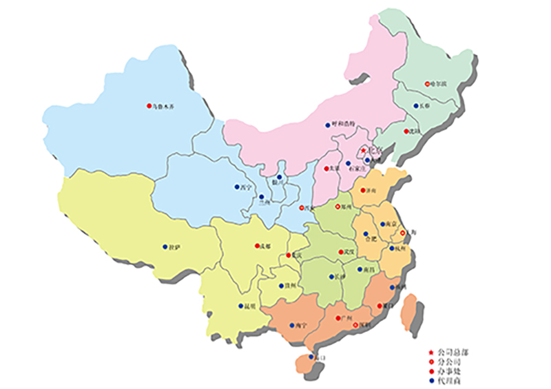 公司逐步在區域中心城市成立分公司或辦事處,為廣大客戶(hù)提供貼切快捷的支持和服務(wù),各地的代理商也可以提供即時(shí)的現場(chǎng)服務(wù)保障。